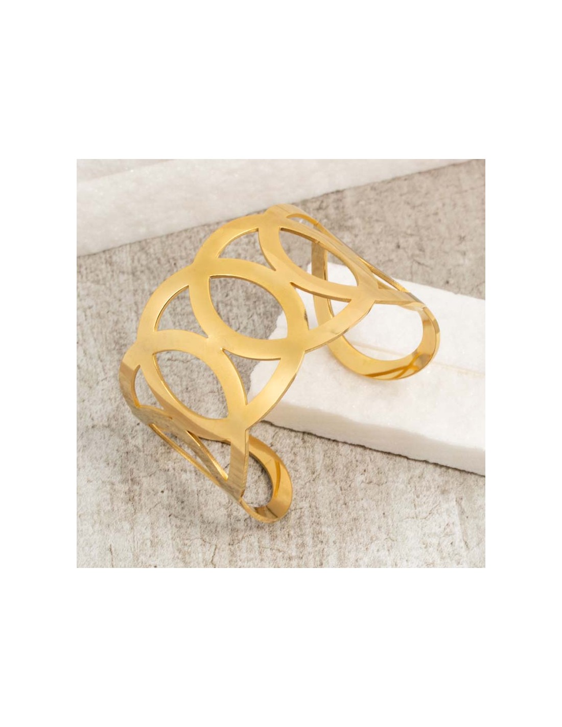 Bracelet UNIVERS Gold Manchette réglable flexible rigide ajourée Cercles entrelacés Doré Acier inoxydable doré à l'or fin